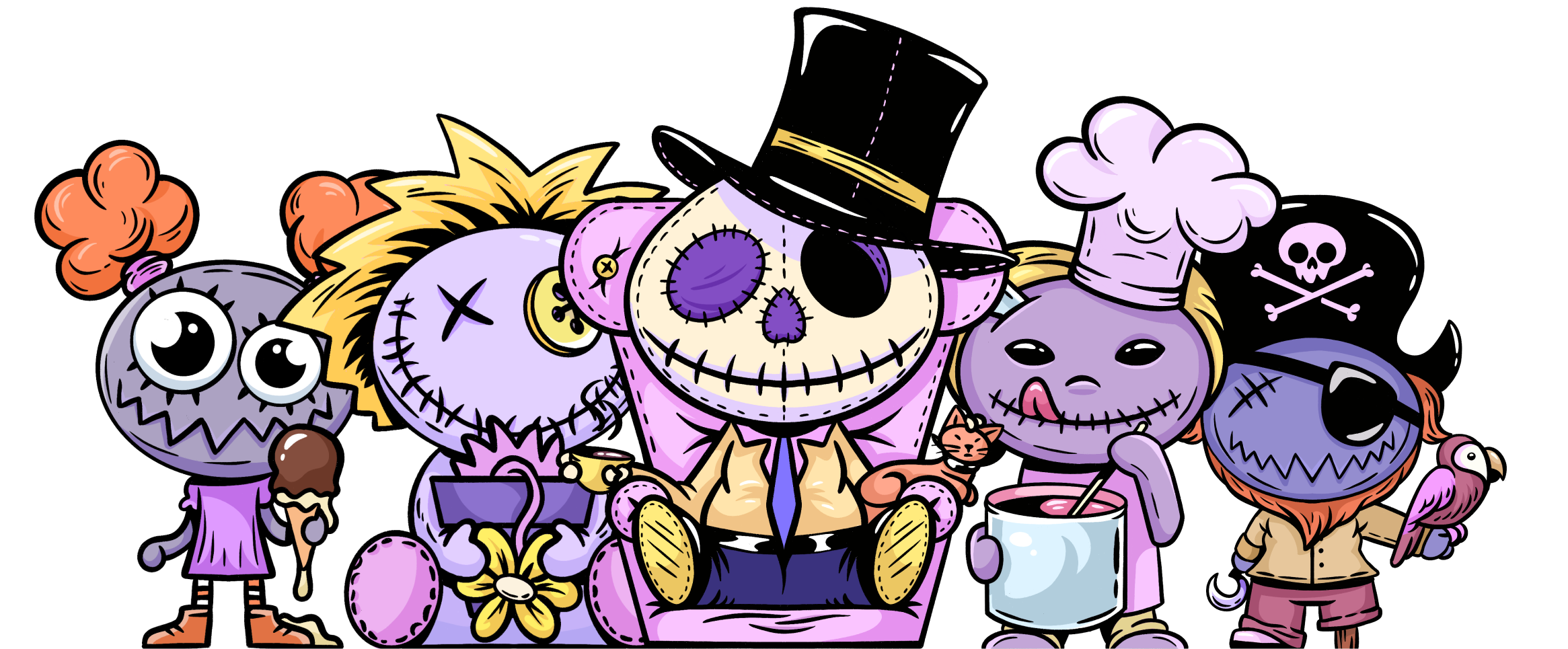 Creepy Friends is a series of 5,000 uniquely generated NTFs roaming the factory, hand-drawn and specially created for this project. The little Creeps explore the metaverse with utmost naivety and curiosity, looking for a Friend.